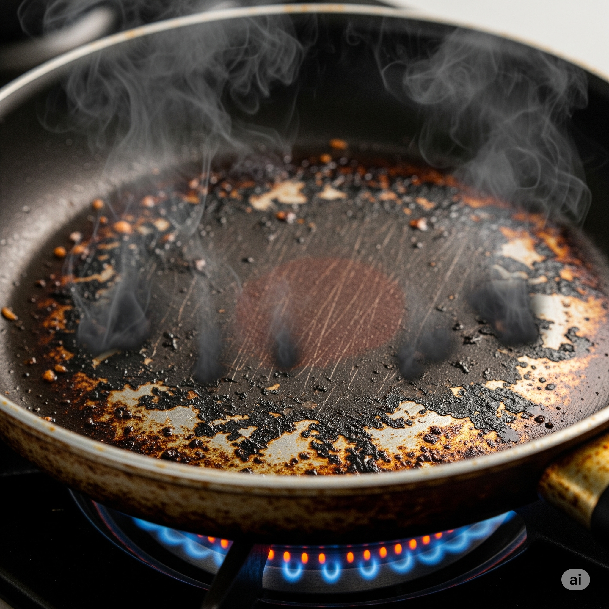 벗겨진 코팅 후라이팬은 사용하지 말아야 합니다. 테플론으로 만들어진 이 팬은 기름 없이도 음식을 쉽게 조리할 수 있지만, 코팅이 벗겨지면 문제가 생깁니다. 벗겨진 부분에서 미세플라스틱과 독성 가스가 나올 수 있는데, 이는 건강에 해롭습니다.
